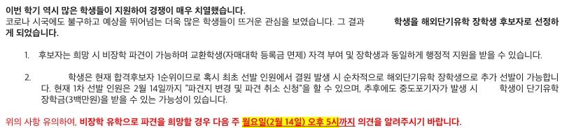 그러던 중 단기유학 참가자 모집 공고가 올라왔다.